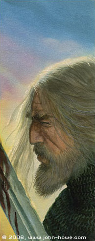 "Theoden" by John HoweIt’s not hard to imagine why Jackson went with the image of an exorcism, for there is clearly something deeply spiritual about this passage. At one point, Theoden smiles and as he did so many lines of care were smoothed away and did not return.